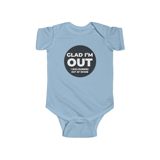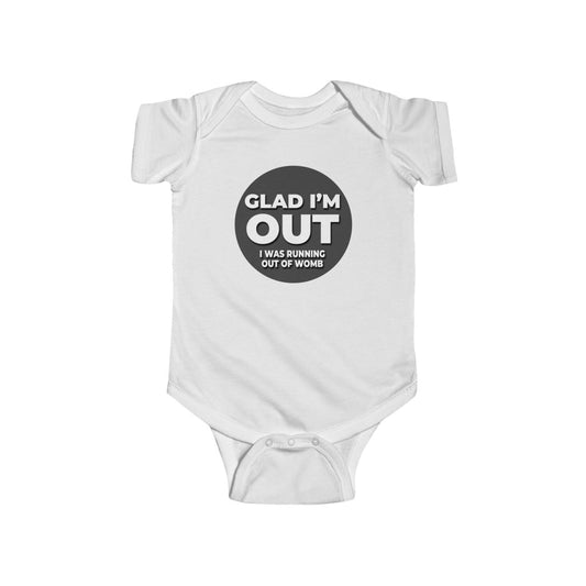 "GLAD I'M OUT" - Infant Fine Jersey Bodysuit