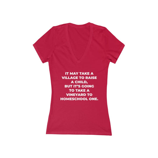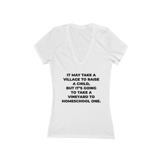 "IT MAY TAKE A VILLAGE TO RAISE A CHILD..." - Women's Jersey Short Sleeve Deep V-Neck Tee