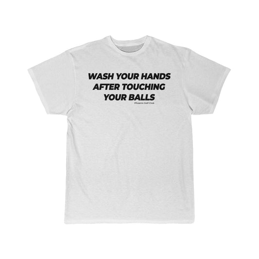 "WASH YOUR HANDS AFTER TOUCHING YOUR BALLS" - Men's Short Sleeve Tee